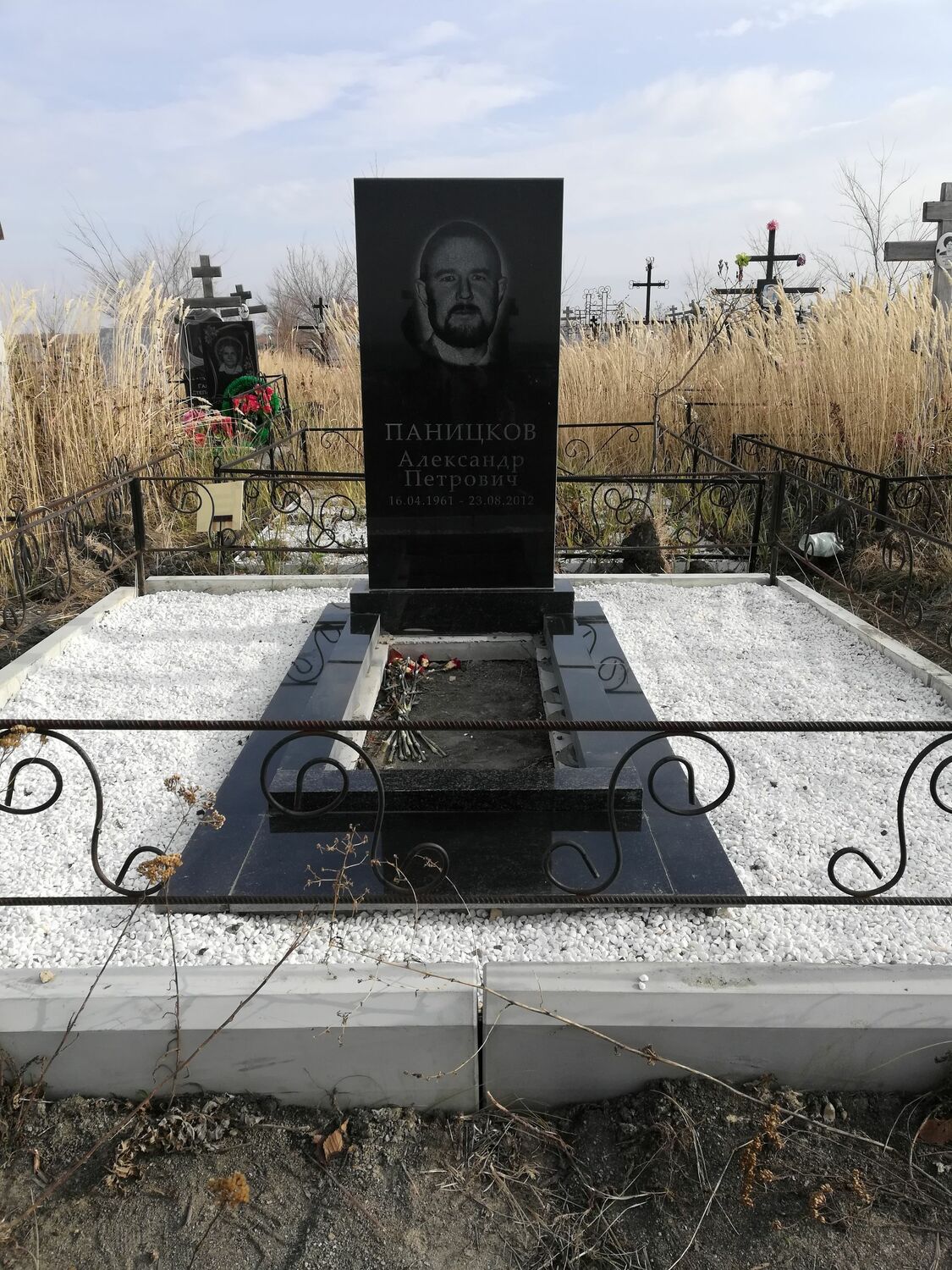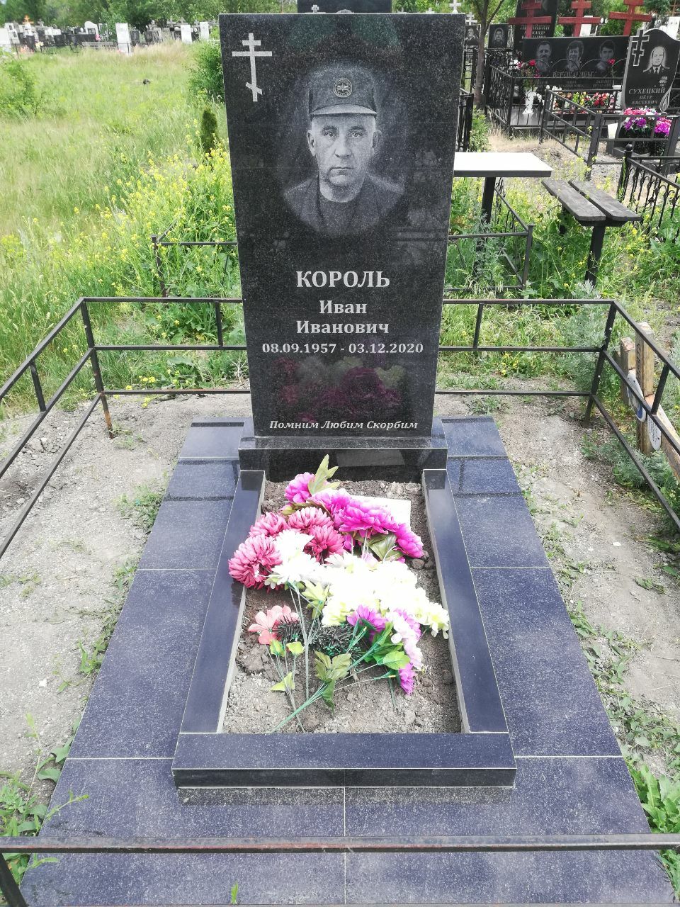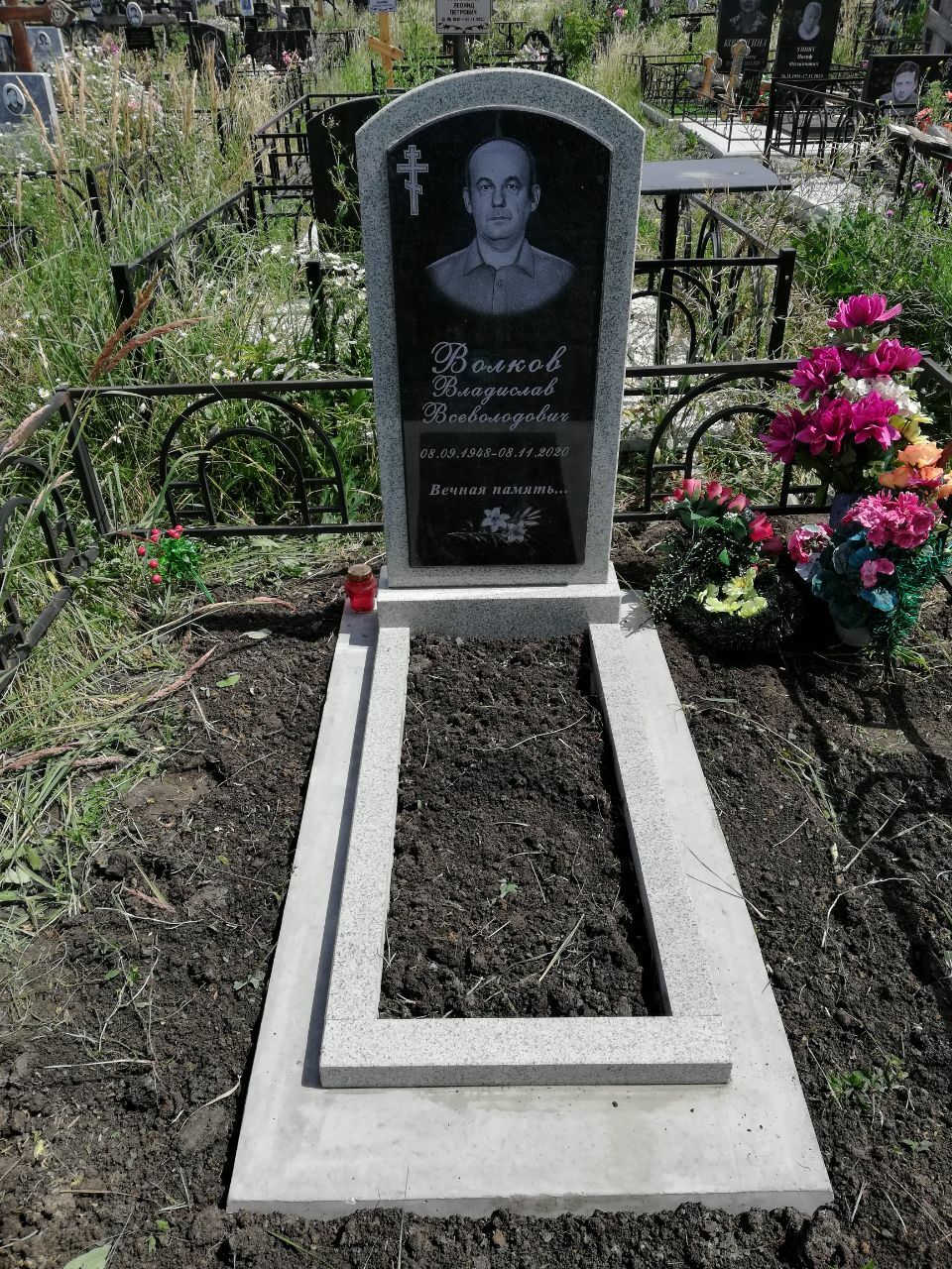 Гранитный цветник 100-60 см. С гравировкой портрета, надписи, православного креста.