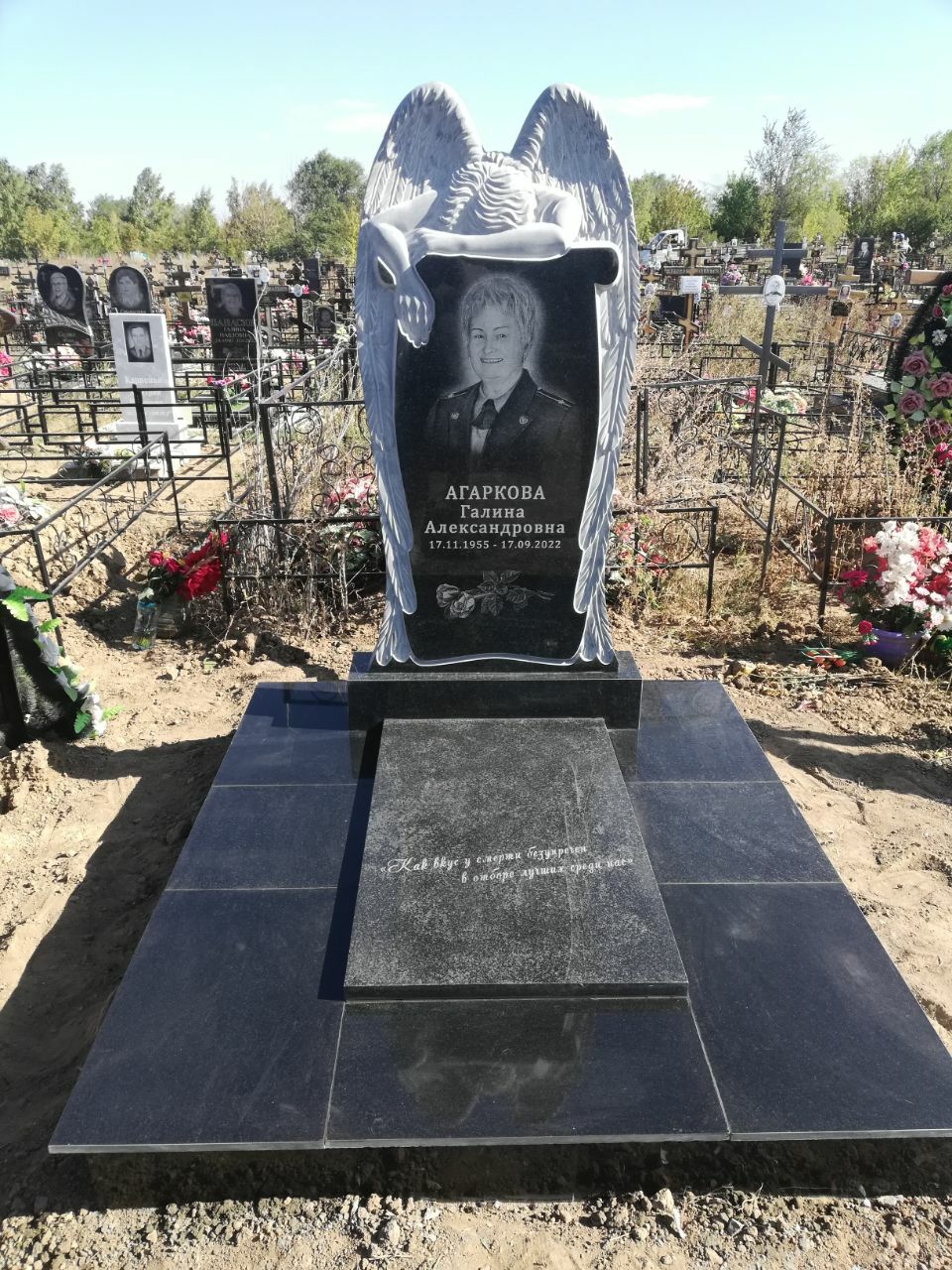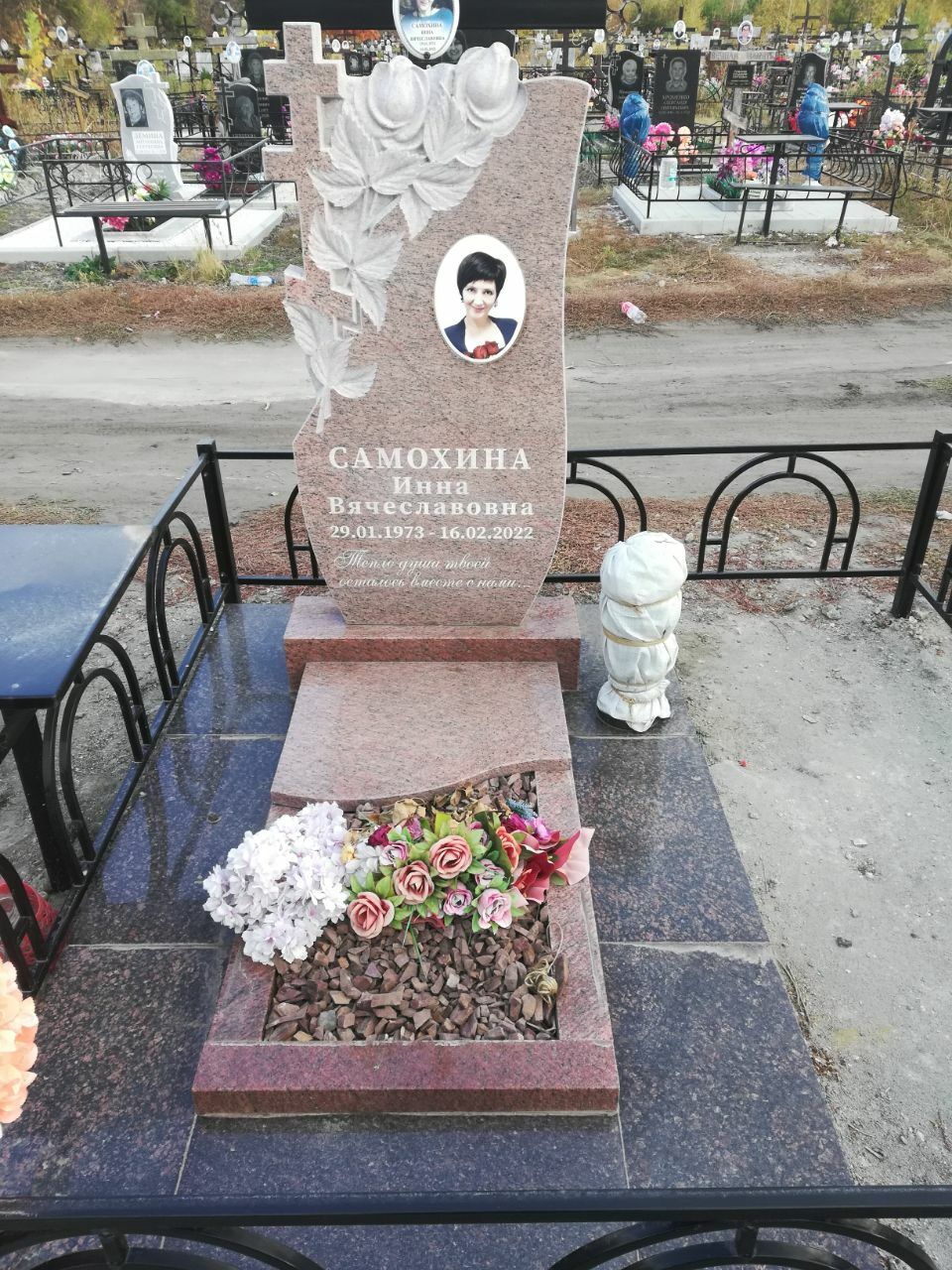 В предложение включены памятник 80-40 см, тумбочка, цветник, фундамент под памятник, гравировка портретов и надписей. Установка . Стоимость под ключ 57 000 рублей.
