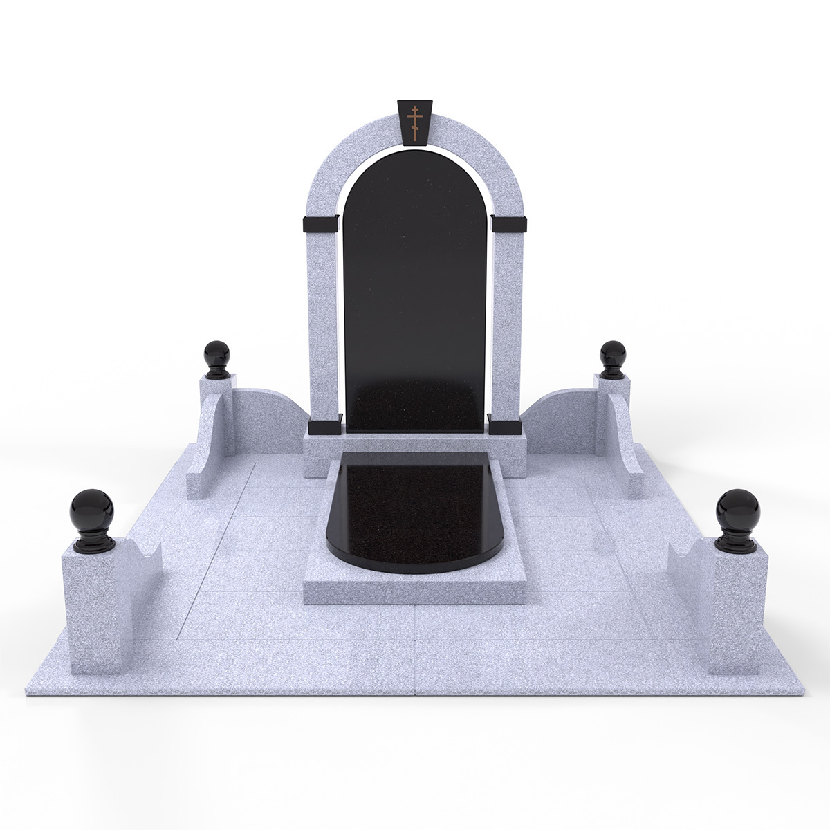 Единый стиль и классическое сочетание гранитов выгодно выделяет наши комплексы из однотипных черных памятников в одном стиле.