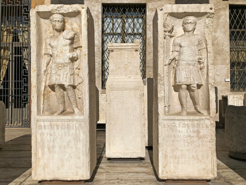 Фамильный памятник семьи Серториев середины I века н.э. из Илласи близ Вероны. Старший брат Луций Серторий Фирм (справа) был орлоносцем XI Клавдия легиона из Бурнума в Далмации. Младший брат Квинт Серторий Фест (слева) был центурионом в том же легионе. Он изображён со своими знаками различия, в том числе тростью из виноградной лозы. Средний памятник принадлежит их родителям Луцию Серторию Сисенне и Теренции Максиме.